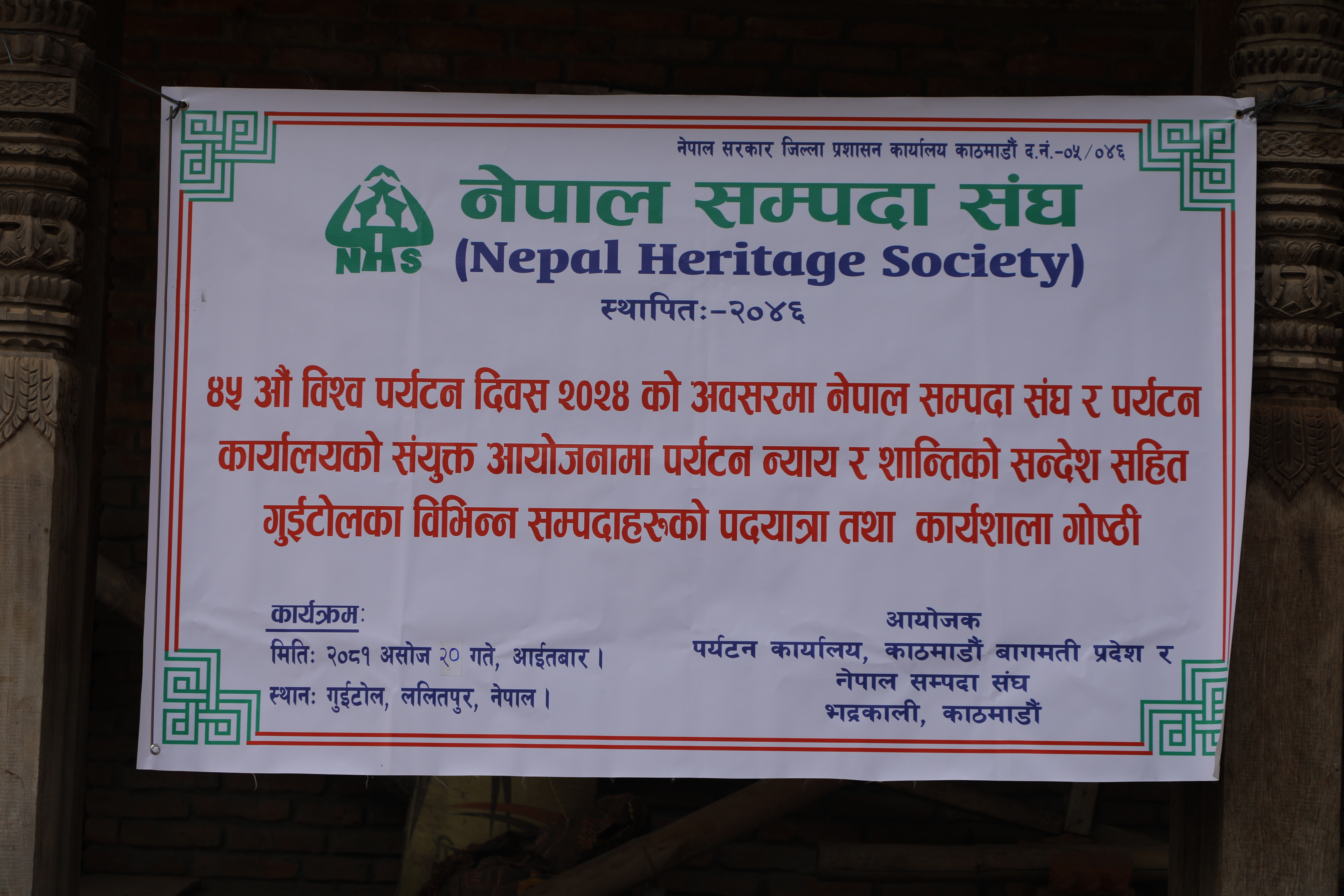 नेपाल सम्पदा संघको सहकार्यमा ४५औँ विश्व पर्यटन दिवसको अवसरमा २०८१ असोज २० गते ललितपुर गुईटोलका विभिन्न सम्पदाहरुको पदयात्रा तथा कार्यशाला गोष्ठी